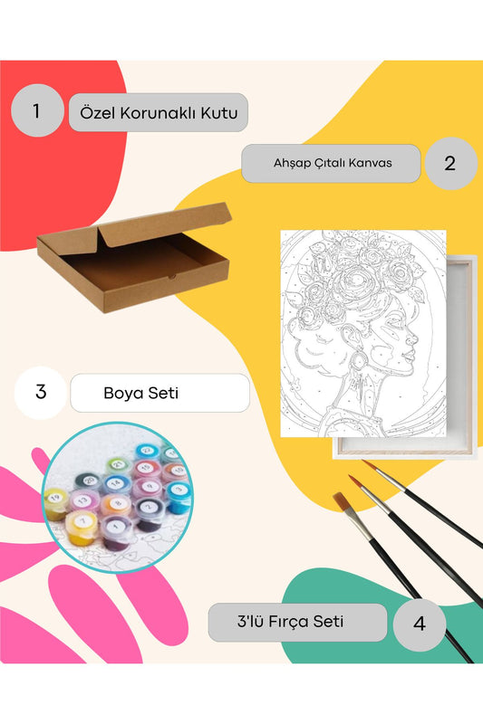 Sayılarla Boyama Seti 40x50 Cm (Çıtalı) Fırça Boya Dahil Numaralı Tuval-At Portre