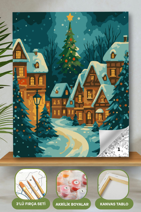 Yılbaşı Hediyelik Tablo Noel 2026 Sayılarla Boyama Seti Boya Fırça Dahil Tablo